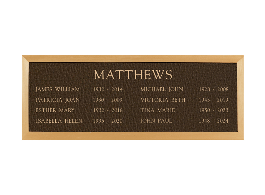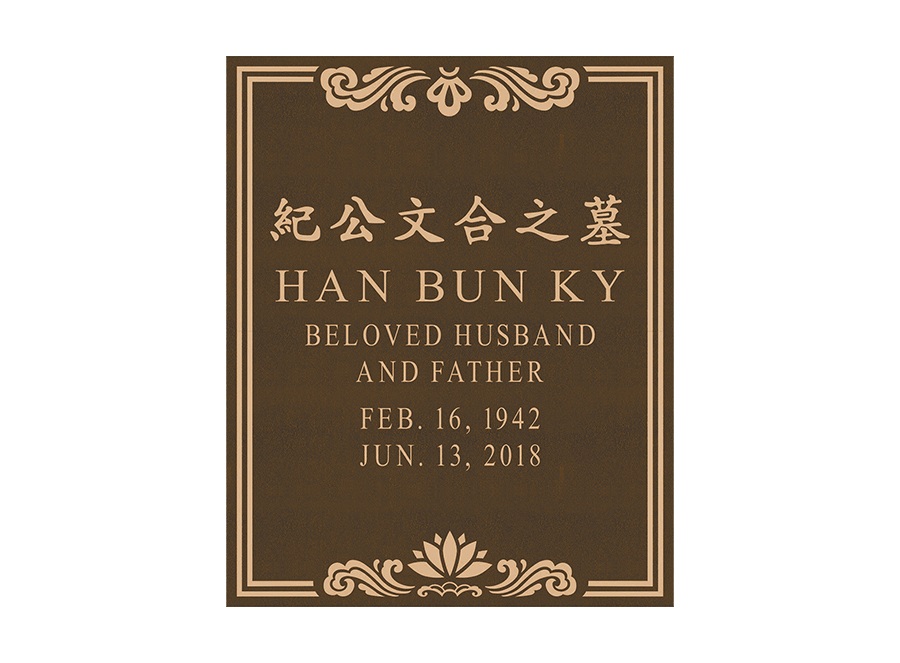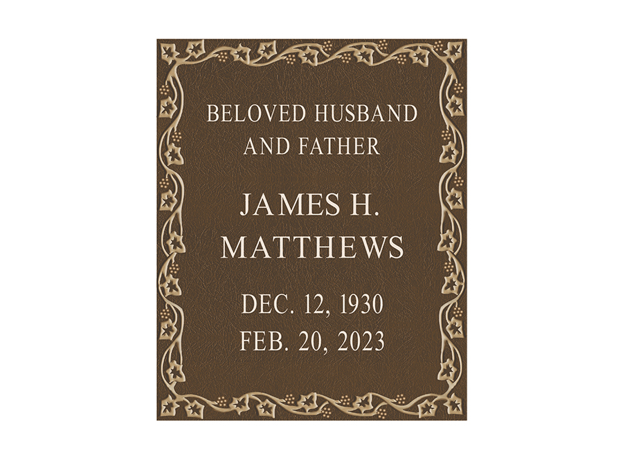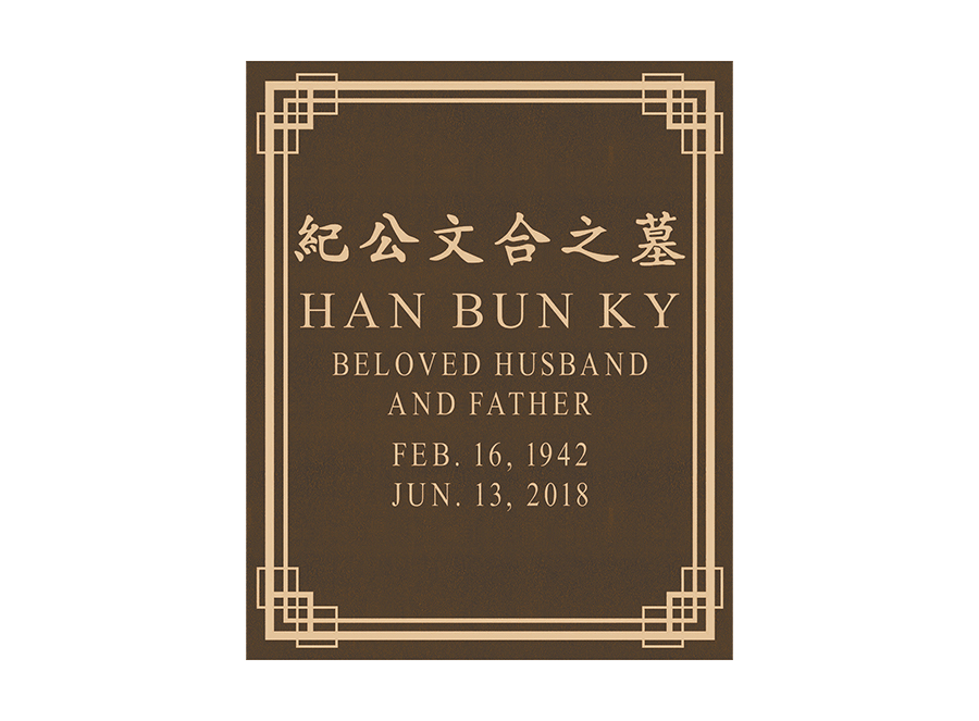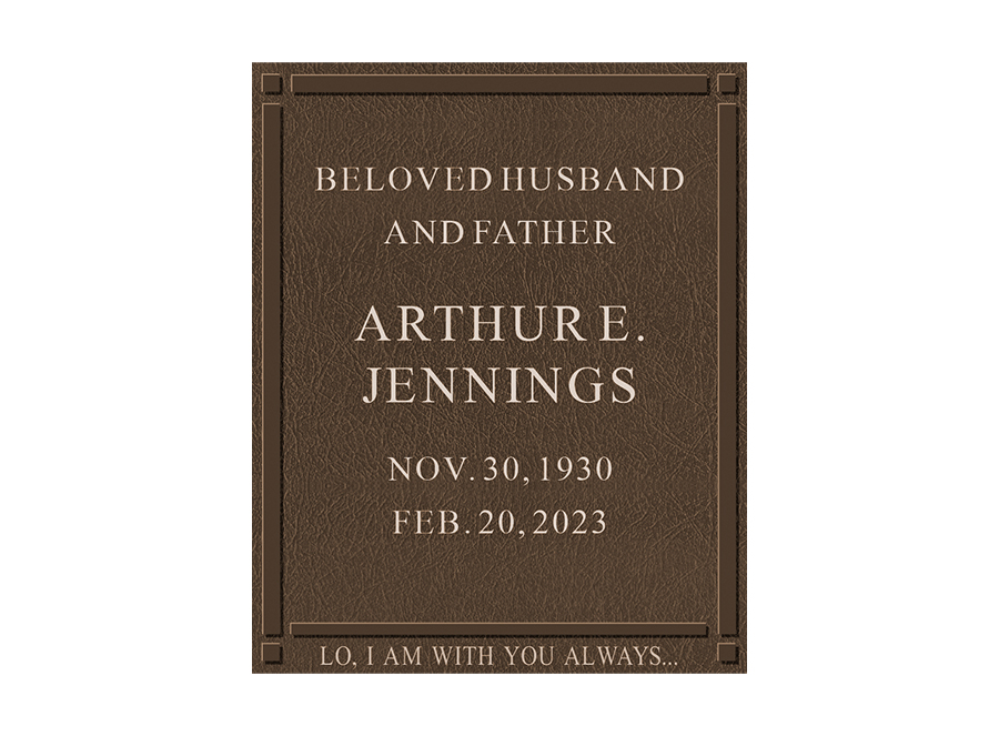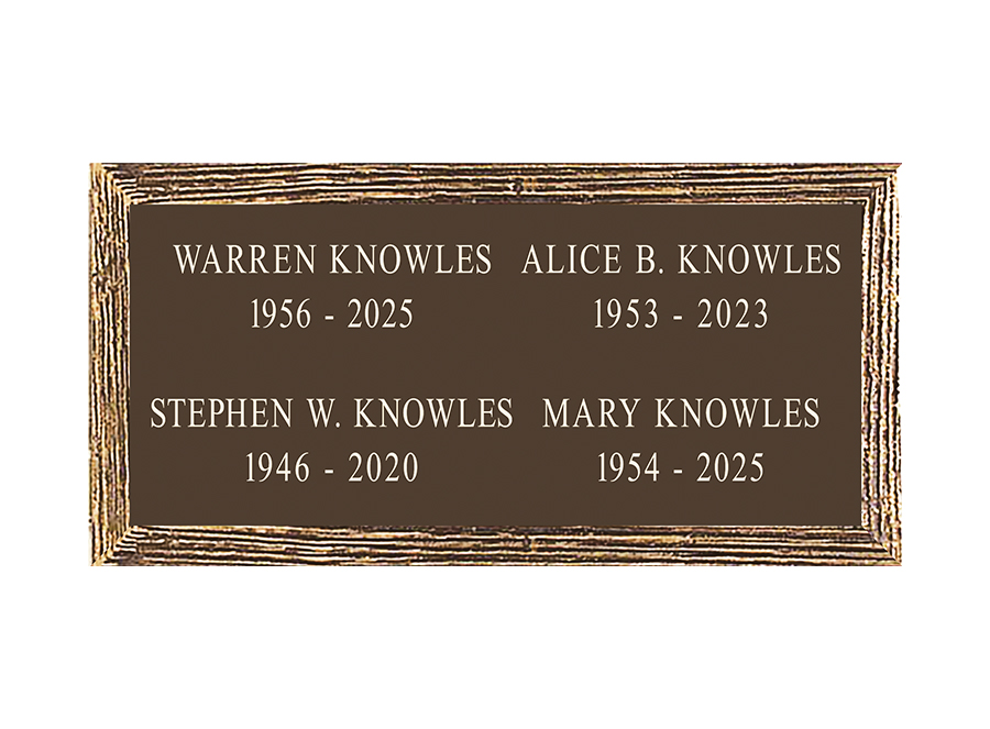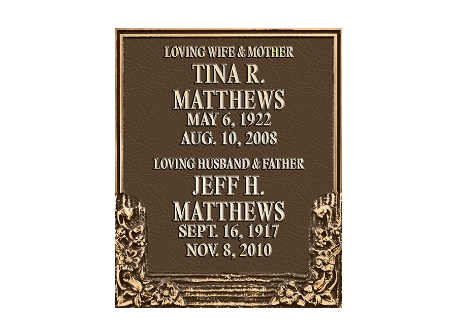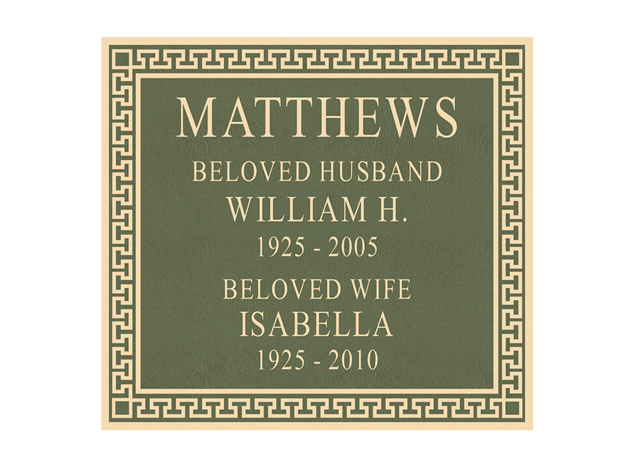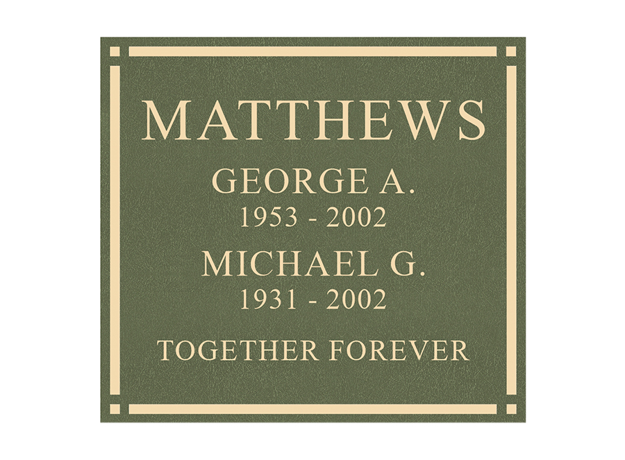 A foundation and placement charge of $250 is required on all niche tablets. Measurements listed are height by width. Outdoor niche placement is available with an “Outdoor Verde” finish. Style numbers are the same with an “ODV” extension. (ie. No. 522ODV)