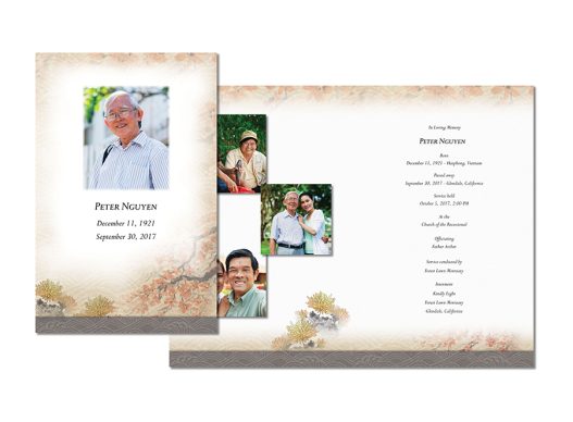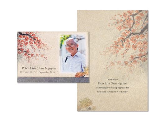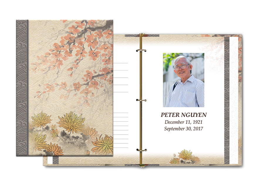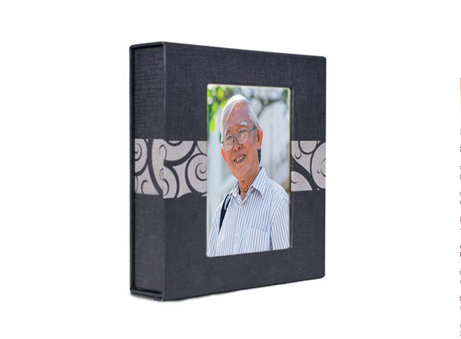 Includes memorial register book, 100 bi-fold memory folders (with 4 photos), 50 premium acknowledgement cards with photo, and a bookshelf box